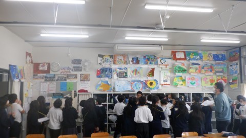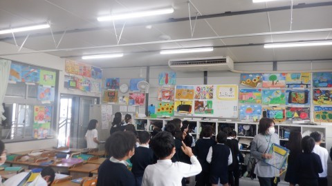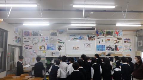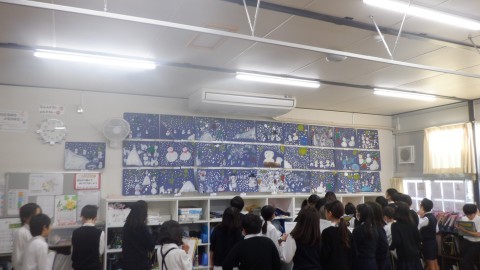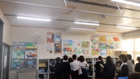 クラスごとに,全てのクラスの絵を鑑賞する時間でした。