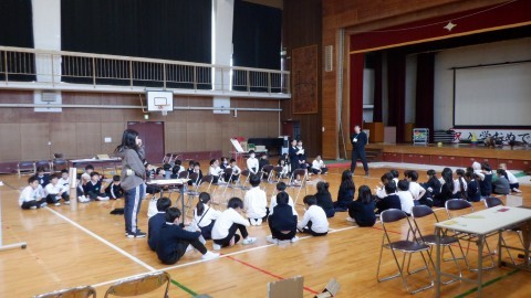 4年生と3年生で交流会を行いました。4年生が障がい理解を深めるために,様々な体験を3年生に教えていました。優しさがあふれる時間でした。