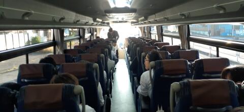 出発式を終え、バスに乗り長島スパーランドへ向け出発です。