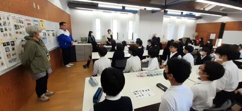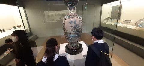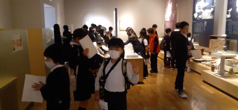 七宝焼の展示を見たり、説明を聞いたりしている様子です。よく話に耳を傾けている子、ワークシートに一生懸命書き込む子もたくさんいました。