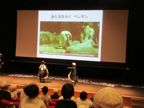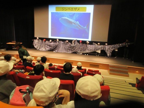 アカデミーでは,ジンベエザメの大きさを実感したり,ペンギンの頭の掻き方を考えたり,
