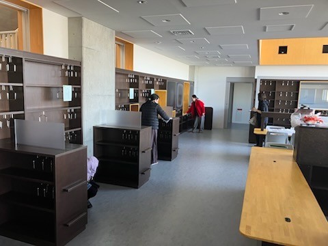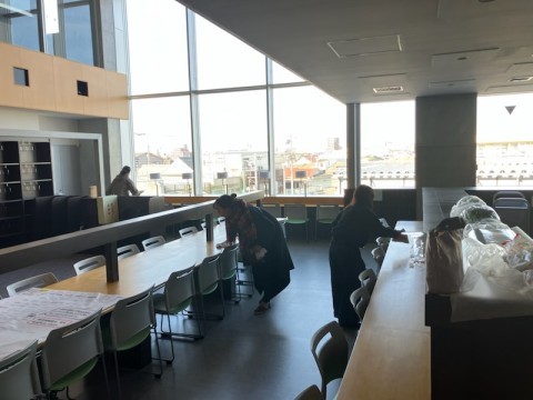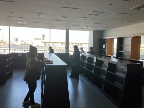 写真は,新校舎図書室の掃除の様子です。