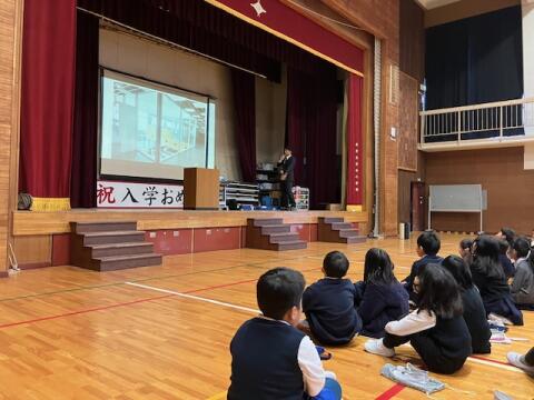 挨拶と校歌で始まった始業式。こどもたちは元気いっぱいでした。