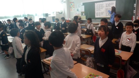 1年生の歌声がろうかに響いてきました。校歌を元気よく歌っていました♪
