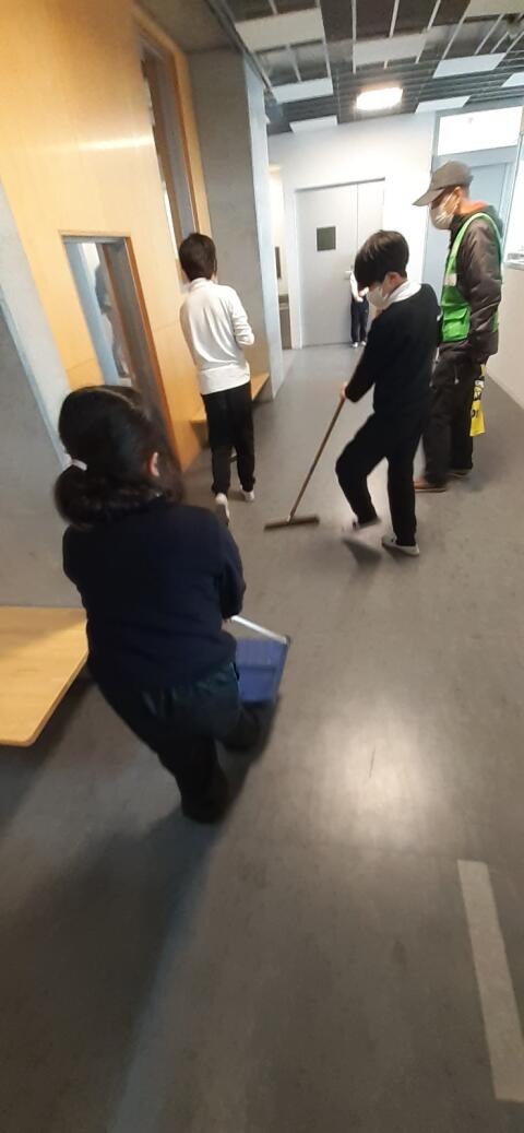 新校舎に移り、場所が変わっても丁寧に掃除をがんばるこどもたちがたくさん見られます。