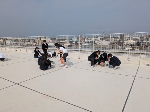 新しい校舎の屋上にはソーラーパネルが並んでおり,太陽光発電されていることに気づいた児童もいました。