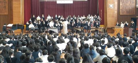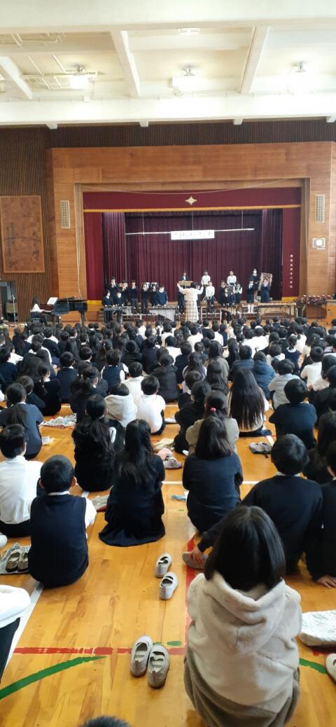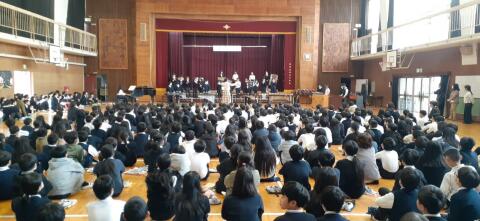 6年生とのお別れ会では、クラス合奏、全体合奏を披露しました。心を1つに演奏する6年生の姿や音の重なりに、1年生から5年生のこどもたちは感動と憧れの気持ちをもったようです。