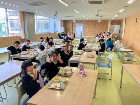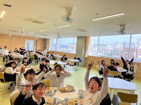 新校舎で初めてのランチルームで給食!