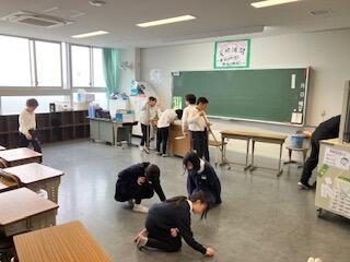 大掃除の様子です。ありがとうの気持ちを込めて頑張るこどもたち。