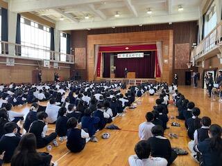 生徒指導の先生からは、こどもたちが頑張ったことや、学校や登下校、地域で遊ぶ時など気をつけることなど話がありました。