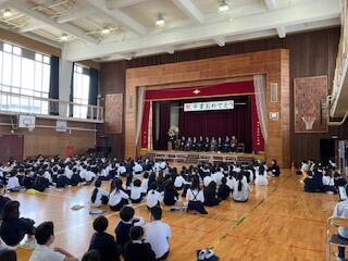 元気よく校歌を歌ったり挨拶をしたりした後、校長先生のお話を聞きました。