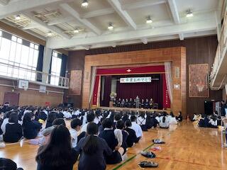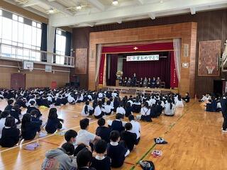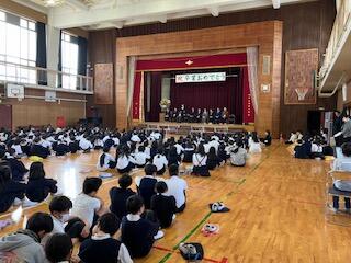 校長先生からは、学年ごとの「いきいきしていたこどもたちの姿」を聞きました。話を聞いているこどもたちの姿は、真剣そのもの。「頑張ったのだから自信を持って」という校長先生の言葉に嬉しそうな表情のこどもたちでした。