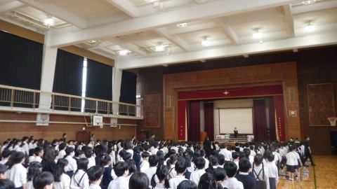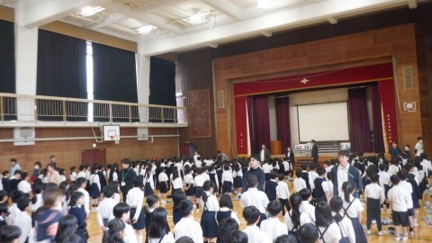 生徒指導の先生からは,先週こどもたちが頑張った姿を写真を見ながらお話しされました。『聴く』ことの大切さ,4月の生活目標「自分から挨拶をしよう」が広がりつつありますので,学校でも家でも,みなさんますます頑張っていきましょう!次使う人が気持ちよく使えるよう,トイレのスリッパを並べたり,登下校中の踏切の通り方など大切なお話もありました。