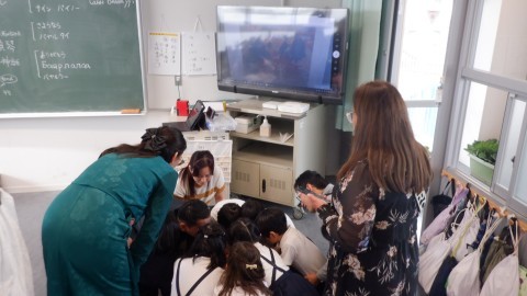 3年生が交流し,モンゴルのこどもの生活の様子を映像で見せてもらったり,たくさん質問したりしました。