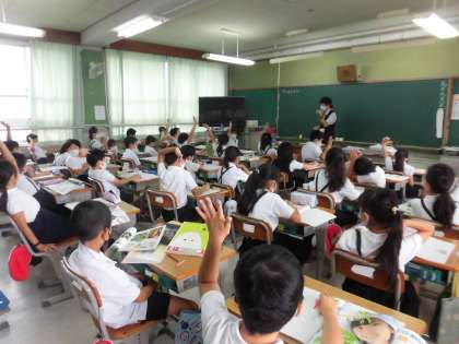 2組は音楽です。姿勢よく歌える人も増えてきて,とてもきれいな声が出るようになってきています。