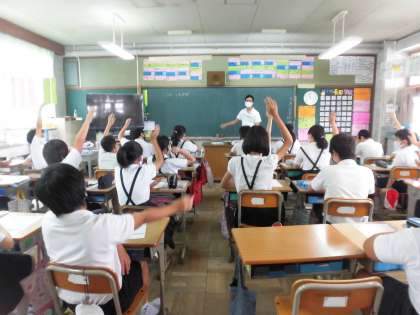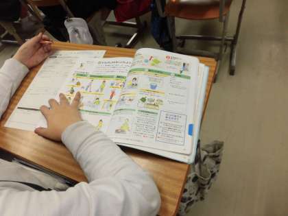 1組と2組は家庭科です。「クリーン大作戦」そうじについての学習です。そうじをする手順などを確認しています。ワークシートには,実際に自分のお家のそうじをしたことについて書くところもありました。