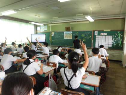 3組は社会科で日本の歴史の学習です。今日は織田信長のことについて勉強していました。