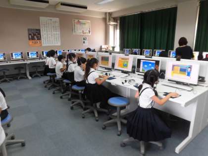 1組はコンピュータールームでパソコンの学習です。マウスを使ってドラッグなどの操作の練習をしています。みんな上手ですね。
