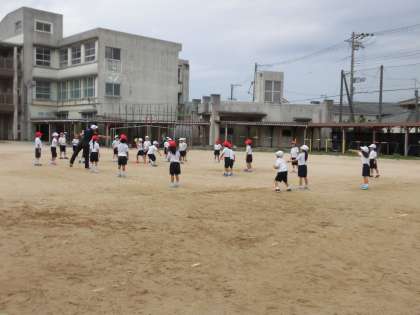 2組と3組は体育です。みんなが大好きなドッチボールをしています。