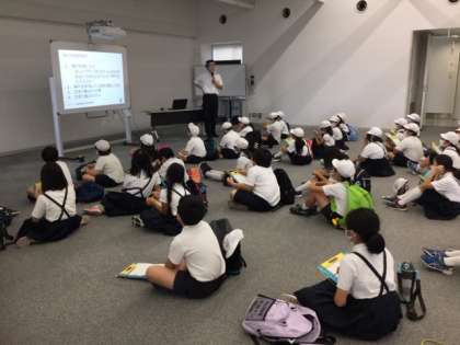 神戸空港の職員の方から空港で働く車や滑走路の長さなどについて教えていただきました。