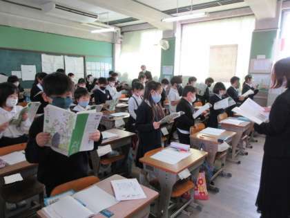 今日の授業では,様子を表す言葉について学習しました。教科書の挿絵を見て,様子を表す言葉を使って文章を書きました。いろいろな種類の様子を表す言葉を使い文章を書くことができていました。