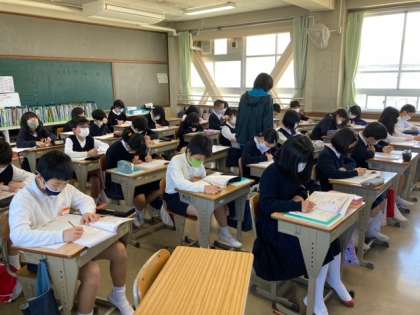 6年生は外国語や算数の学習をしていました。みんな学習に向かう姿勢がよく、集中していました。