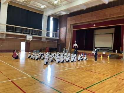 めあてをもって、体育参観の練習を始めています。1年生なりのめあてを、担任の先生が掲げて練習を開始しています。
