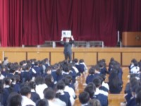 校長先生のお話、夏休みの過ごし方についてのお話、そして代表委員会の子どもたちが募金の結果発表をしました。