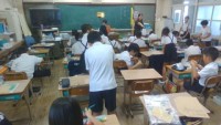 1組はわり算の商を分数で表す学習、2組は倍数・約数のテストをしています。