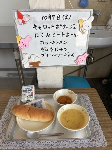 〇キャロットポタージュ 〇煮込みミートボール 〇ブルーベリージャム でした。