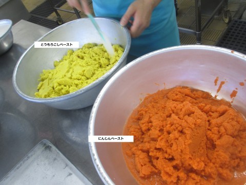キャロットポタージュにはカットしたにんじんと裏ごしにんじんを使いました。