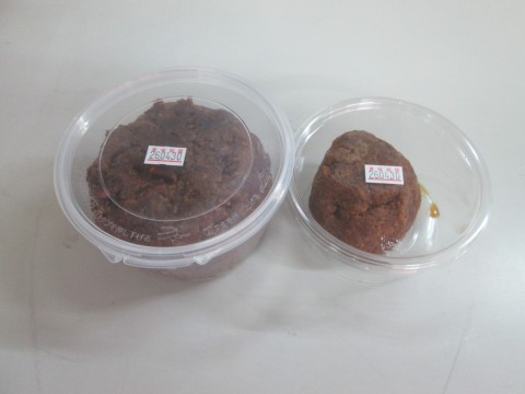 左の写真は調理実習用、右は持ち帰り用のおみそです。