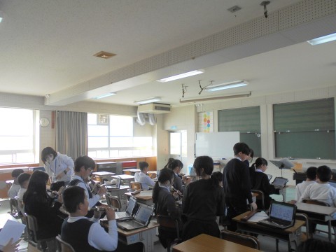 音楽の授業です。自分で旋律を考え,メロディーをつくっています。