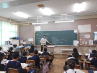 図工の授業です。作品の最後に仕上げに取りかかっています。