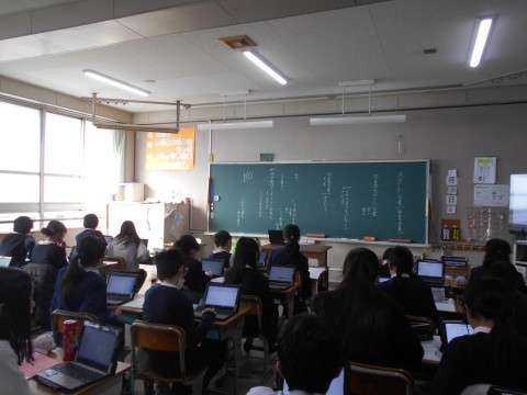 国語の授業です。自分がこれまでに出会った「名言」だと感じた言葉を書き出し,調べています。