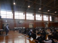 外国語の授業です。自分たちが調べた国について,英語のみで発表しています。