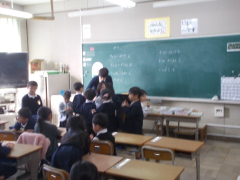 冬休みにしたことを伝え合うゲームをしているクラスもあり,新学期を楽しんでいました。