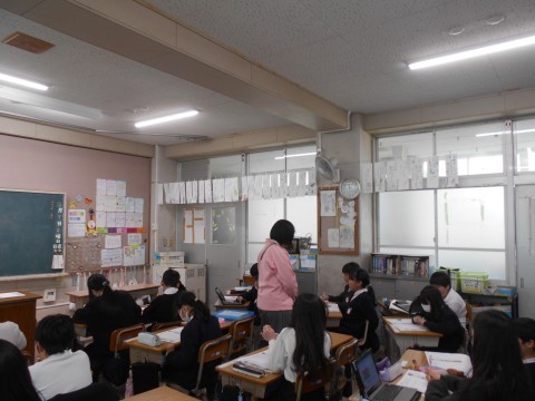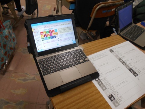 総合的な学習の時間です。「SDGs」について学習しています。持続可能な社会の実現に向けて,必要な知識や自分たちができることについて学んでいます。