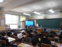 国語の授業です。「スーホの白い馬」の学習です。白い馬がスーホのもとに帰ってきた場面について読み取っています。