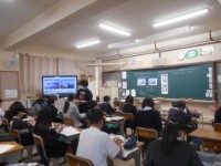 音楽の授業です。6年生におくる「威風堂々」の合奏の練習をしてます。