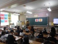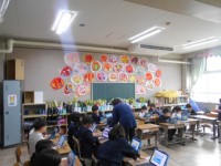 算数の授業です。ぼうを使って,いろいろな形づくりに取り組んでいます。