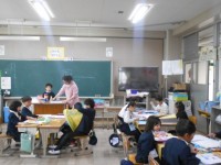 図工の授業です。「にこにこたいよう」の仕上げをしています。