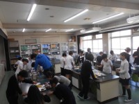 1組外国語、2組理科、3組図書、4組1年生の給食補助のようすです。