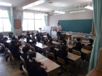 栄養教諭によるエンドウ豆を使った授業を行いました。