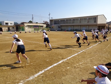 持久力をはかる「シャトルラン」に取り組んでいる様子です。
