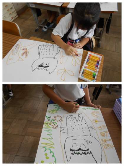 1年 図工 公開日 2023/09/15 更新日 2023/09/15 1年生 カラーモンスター「今の気持ちはどんな色」 自分の気持ちの色を決めて、モンスターを描いています。絵の具で色を入れたらどんな感じになるのかな?