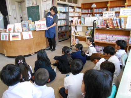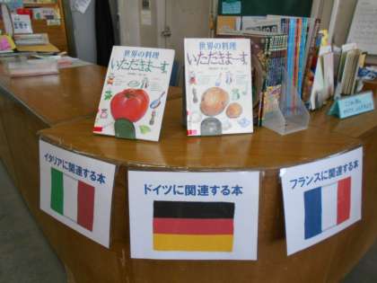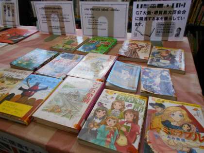 今、本校の図書室には、『G7大阪・堺貿易大臣会合』を記念して、7か国に関する本が展示されており、図書の時間には、子どもたちが手に取って読んでいます。