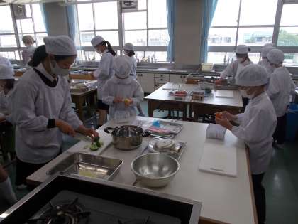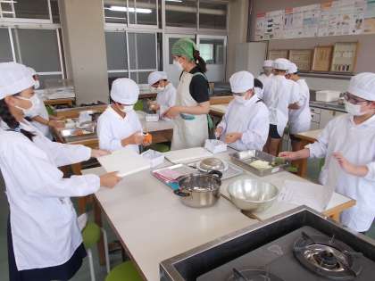 5年 家庭科 公開日 2024/06/07 更新日 2024/06/07 5年生 今日は3組が調理実習をしました。 学校では始めて包丁やピーラーを使いましたが、けがをすることなく安全に気を付けて実習することができました。