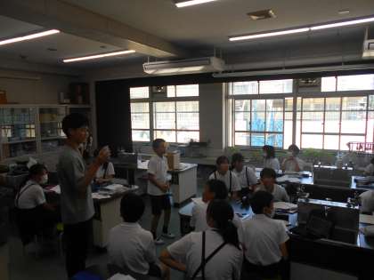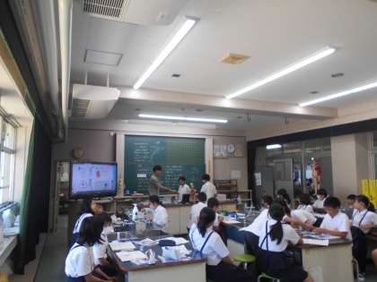 教室を体内に見立てて、血液の流れとはたらきの学習をしています。