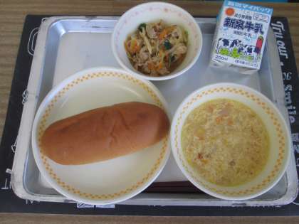 6月12日(水) 給食 公開日 2024/06/12 更新日 2024/06/12 給食 黒糖パン 中華コーンスープ チャプチェ 牛乳 チェプチェは韓国料理で、本場ではさつまいもなどのでんぷんから作られた麺を使用します。 給食では、チェプチェの麺が手に入らないので、緑豆春雨を使用して作っています。